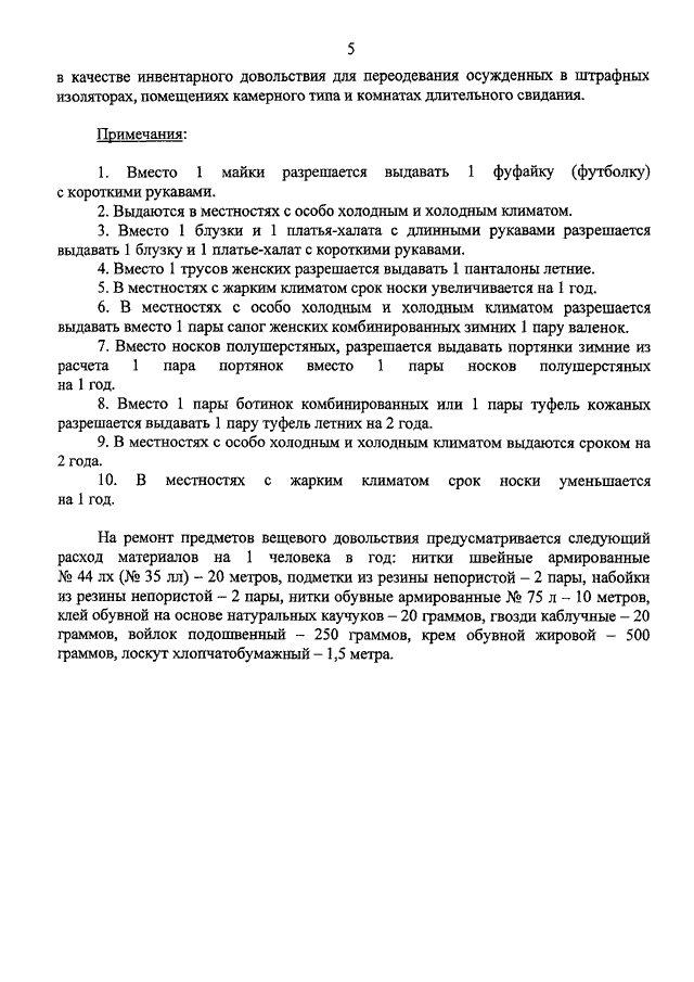 "ОБ УТВЕРЖДЕНИИ НОРМ ВЕЩЕВОГО ДОВОЛЬСТВИЯ ОСУЖДЕННЫХ К ЛИШЕНИЮ СВОБОДЫ И ЛИЦ, СОДЕРЖАЩИХСЯ В СЛЕДСТВЕННЫХ ИЗОЛЯТОРАХ"