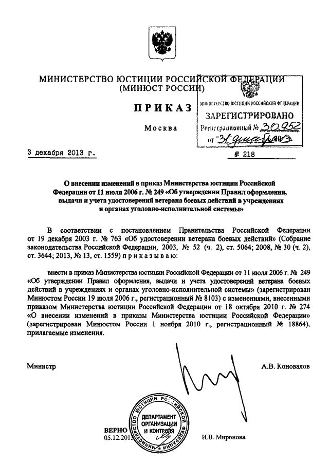 ПРИКАЗ Минюста РФ от 03.12.2013 N 218