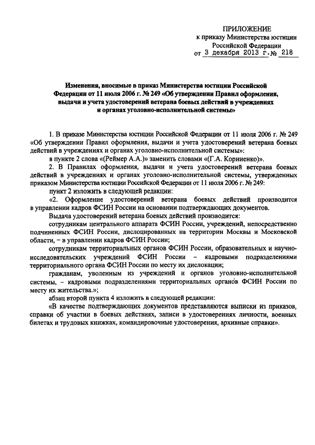 ПРИКАЗ Минюста РФ от 03.12.2013 N 218
