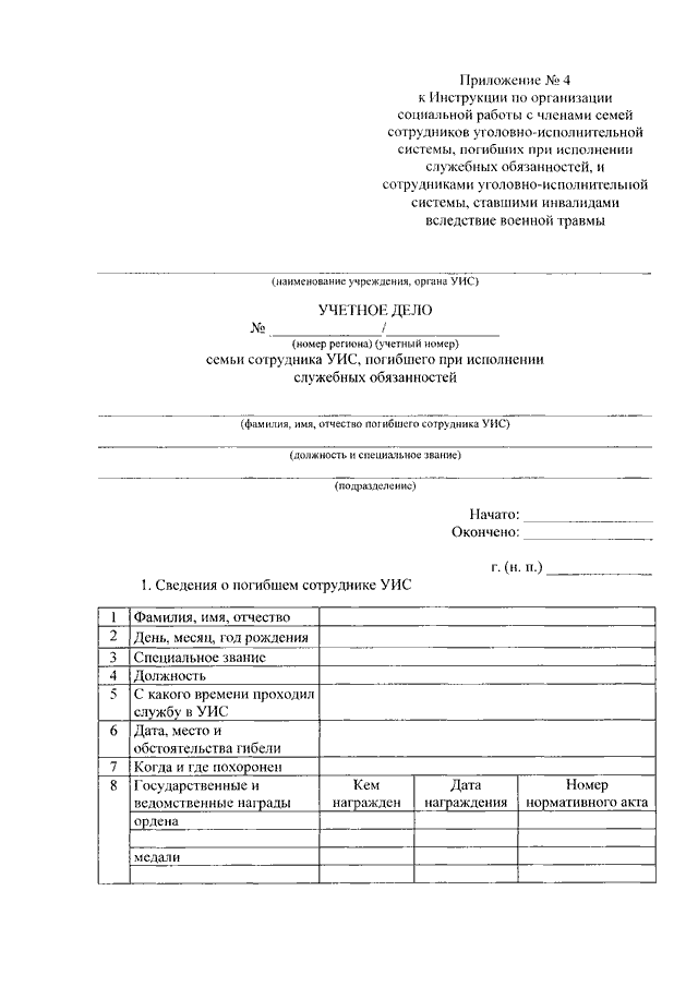 "ОБ УТВЕРЖДЕНИИ ИНСТРУКЦИИ ПО ОРГАНИЗАЦИИ СОЦИАЛЬНОЙ РАБОТЫ С ЧЛЕНАМИ СЕМЕЙ СОТРУДНИКОВ УГОЛОВНО - ИСПОЛНИТЕЛЬНОЙ СИСТЕМЫ, ПОГИБШИХ ПРИ ИСПОЛНЕНИИ СЛУЖЕБНЫХ ОБЯЗАННОСТЕЙ, И СОТРУДНИКАМИ УГОЛОВНО - ИСПОЛНИТЕЛЬНОЙ СИСТЕМЫ, СТАВШИМИ ИНВАЛИДАМИ ВСЛЕДСТВИЕ ВОЕННОЙ ТРАВМЫ"