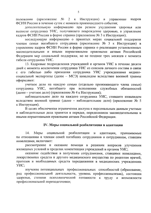 "ОБ УТВЕРЖДЕНИИ ИНСТРУКЦИИ ПО ОРГАНИЗАЦИИ СОЦИАЛЬНОЙ РАБОТЫ С ЧЛЕНАМИ СЕМЕЙ СОТРУДНИКОВ УГОЛОВНО - ИСПОЛНИТЕЛЬНОЙ СИСТЕМЫ, ПОГИБШИХ ПРИ ИСПОЛНЕНИИ СЛУЖЕБНЫХ ОБЯЗАННОСТЕЙ, И СОТРУДНИКАМИ УГОЛОВНО - ИСПОЛНИТЕЛЬНОЙ СИСТЕМЫ, СТАВШИМИ ИНВАЛИДАМИ ВСЛЕДСТВИЕ ВОЕННОЙ ТРАВМЫ"