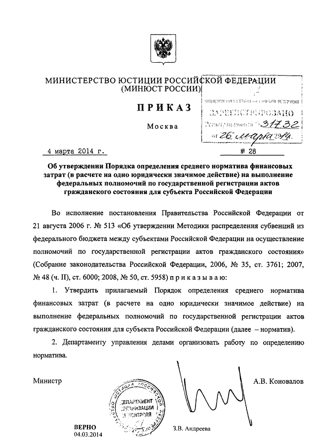 ПРИКАЗ Минюста РФ от 04.03.2014 N 28