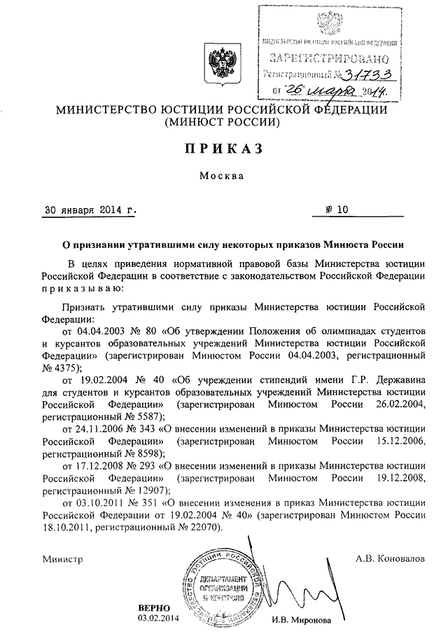 ПРИКАЗ Минюста РФ от 30.01.2014 N 10