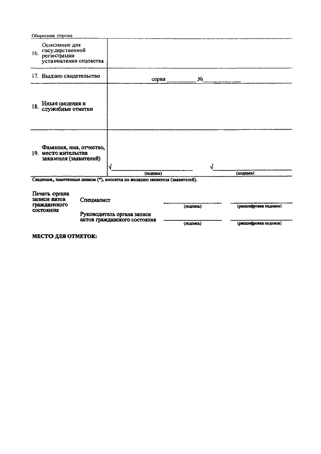 "ОБ УТВЕРЖДЕНИИ ФОРМ БЛАНКОВ ЗАПИСЕЙ АКТОВ ГРАЖДАНСКОГО СОСТОЯНИЯ"