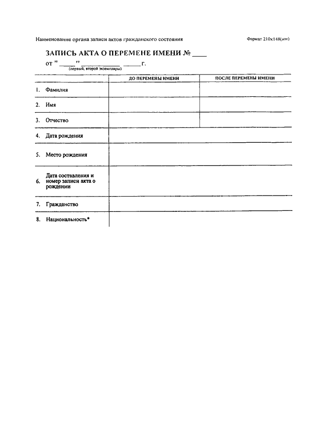 "ОБ УТВЕРЖДЕНИИ ФОРМ БЛАНКОВ ЗАПИСЕЙ АКТОВ ГРАЖДАНСКОГО СОСТОЯНИЯ"