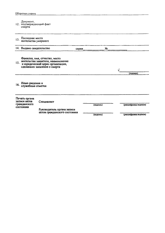 "ОБ УТВЕРЖДЕНИИ ФОРМ БЛАНКОВ ЗАПИСЕЙ АКТОВ ГРАЖДАНСКОГО СОСТОЯНИЯ"