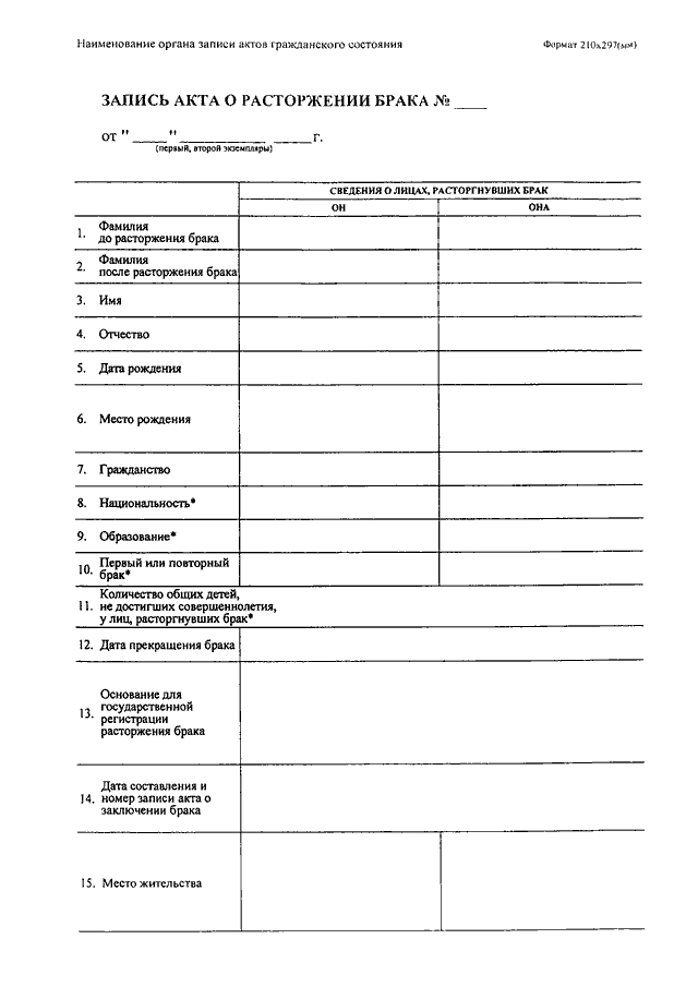 "ОБ УТВЕРЖДЕНИИ ФОРМ БЛАНКОВ ЗАПИСЕЙ АКТОВ ГРАЖДАНСКОГО СОСТОЯНИЯ"