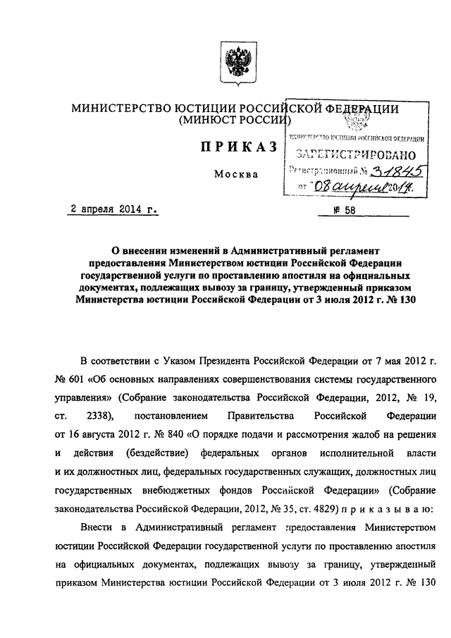 ПРИКАЗ Минюста РФ от 02.04.2014 N 58