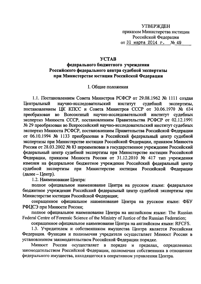 ПРИКАЗ Минюста РФ от 31.03.2014 N 49