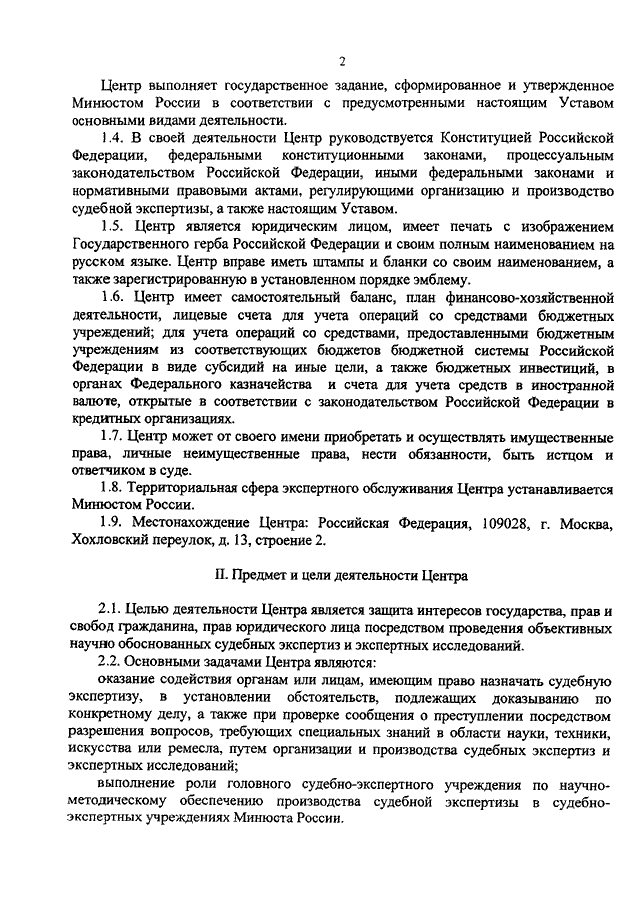 "ОБ УТВЕРЖДЕНИИ УСТАВА ФЕДЕРАЛЬНОГО БЮДЖЕТНОГО УЧРЕЖДЕНИЯ РОССИЙСКОГО ФЕДЕРАЛЬНОГО ЦЕНТРА СУДЕБНОЙ ЭКСПЕРТИЗЫ ПРИ МИНИСТЕРСТВЕ ЮСТИЦИИ РОССИЙСКОЙ ФЕДЕРАЦИИ"