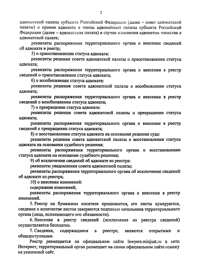 "ОБ УТВЕРЖДЕНИИ ПОРЯДКА ВЕДЕНИЯ РЕЕСТРОВ АДВОКАТОВ СУБЪЕКТОВ РОССИЙСКОЙ ФЕДЕРАЦИИ"