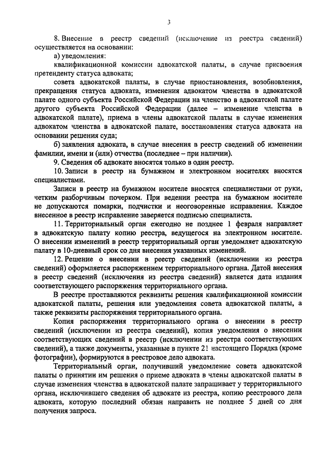 "ОБ УТВЕРЖДЕНИИ ПОРЯДКА ВЕДЕНИЯ РЕЕСТРОВ АДВОКАТОВ СУБЪЕКТОВ РОССИЙСКОЙ ФЕДЕРАЦИИ"