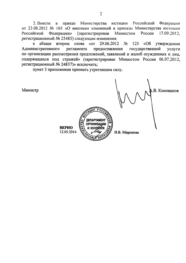 МИНИСТЕРСТВА ЮСТИЦИИ РОССИЙСКОЙ ФЕДЕРАЦИИ ОТ 23.08.2012 N 165 "О