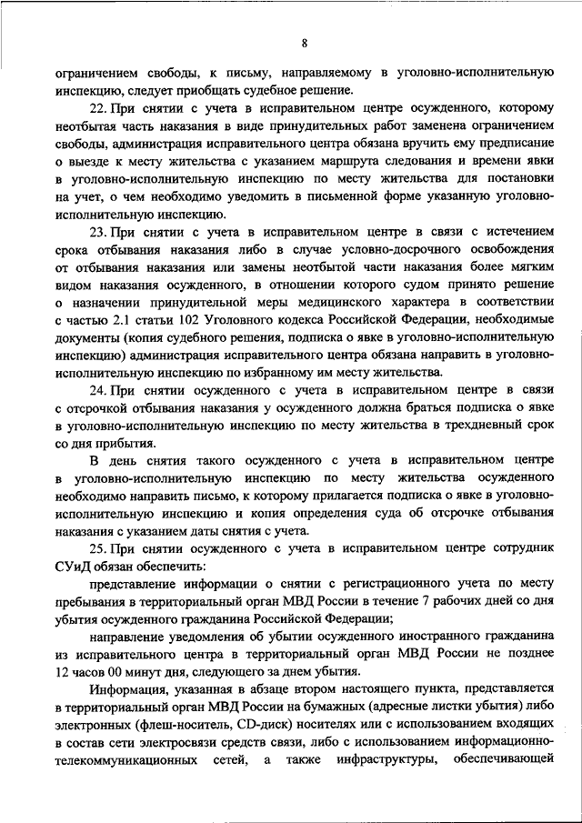 "ОБ УТВЕРЖДЕНИИ ПОРЯДКА ИСПОЛНЕНИЯ АДМИНИСТРАЦИЕЙ ИСПРАВИТЕЛЬНОГО ЦЕНТРА ОБЯЗАННОСТЕЙ ПО ВЕДЕНИЮ УЧЕТА ОСУЖДЕННЫХ К ПРИНУДИТЕЛЬНЫМ РАБОТАМ, ОСУЩЕСТВЛЕНИЮ РЕГИСТРАЦИИ И СНЯТИЯ С РЕГИСТРАЦИОННОГО УЧЕТА ПО МЕСТУ ПРЕБЫВАНИЯ ОСУЖДЕННЫХ К ПРИНУДИТЕЛЬНЫМ РАБОТАМ ГРАЖДАН РОССИЙСКОЙ ФЕДЕРАЦИИ ИЛИ ПОСТАНОВКИ НА МИГРАЦИОННЫЙ УЧЕТ И СНЯТИЯ С МИГРАЦИОННОГО УЧЕТА ПО МЕСТУ ПРЕБЫВАНИЯ ОСУЖДЕННЫХ К ПРИНУДИТЕЛЬНЫМ РАБОТАМ ИНОСТРАННЫХ ГРАЖДАН И ЛИЦ БЕЗ ГРАЖДАНСТВА, ПРОВЕДЕНИЮ С ОСУЖДЕННЫМИ К ПРИНУДИТЕЛЬНЫМ РАБОТАМ ВОСПИТАТЕЛЬНОЙ РАБОТЫ, ПРИМЕНЕНИЮ К НИМ МЕР ПООЩРЕНИЯ И ВЗЫСКАНИЯ, ВЕДЕНИЮ РАБОТЫ ПО ПОДГОТОВКЕ ОСУЖДЕННЫХ К ПРИНУДИТЕЛЬНЫМ РАБОТАМ К ОСВОБОЖДЕНИЮ"