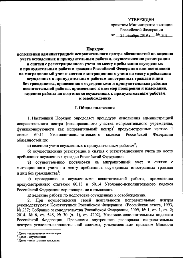 ПРИКАЗ Минюста РФ от 25.12.2019 N 307
